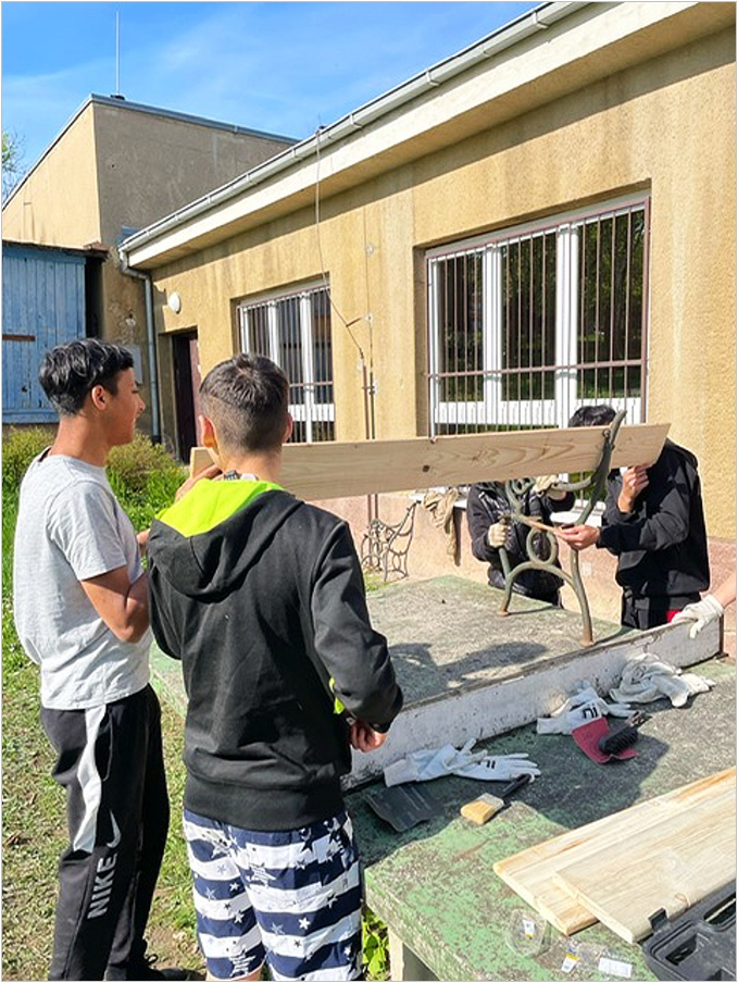 Mladší žáci začali úklidem, sbírali odpadky, větve, zametali chodníky a hrabali trávu. Tento úkol jim šel skvěle od ruky a ukázali tak, že i nejmenší mohou pomoci v péči o společné prostory. Starší žáci se pustili do náročnější práce – opravovali zahradní lavičky. Připravili si ochranné pomůcky, potřebný materiál včetně nových prken, která nejprve opracovali a předvrtali. Po krátké svačině se obě skupiny spojily a společně dokončily opravu laviček nátěrem. Po zaschnutí barvy následovala montáž prken, čímž vznikly nově opravené a bezpečné lavičky pro všechny.