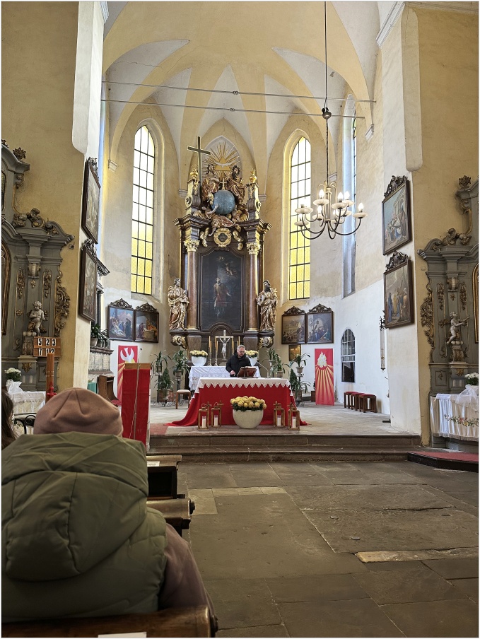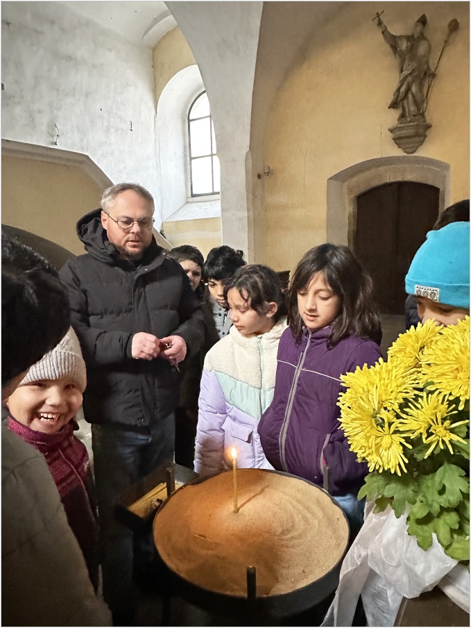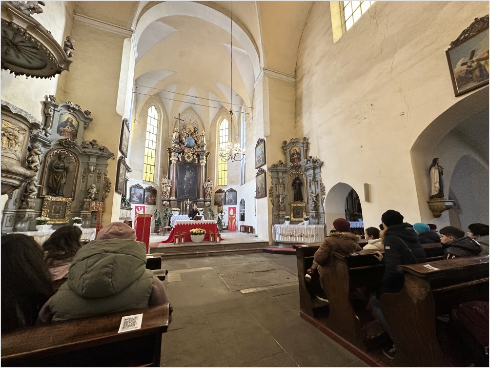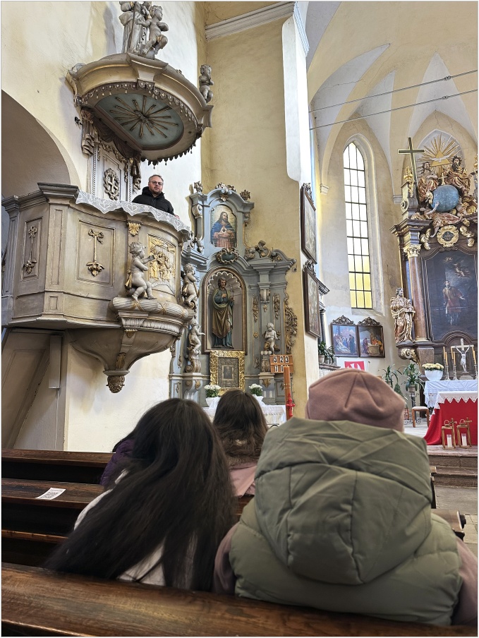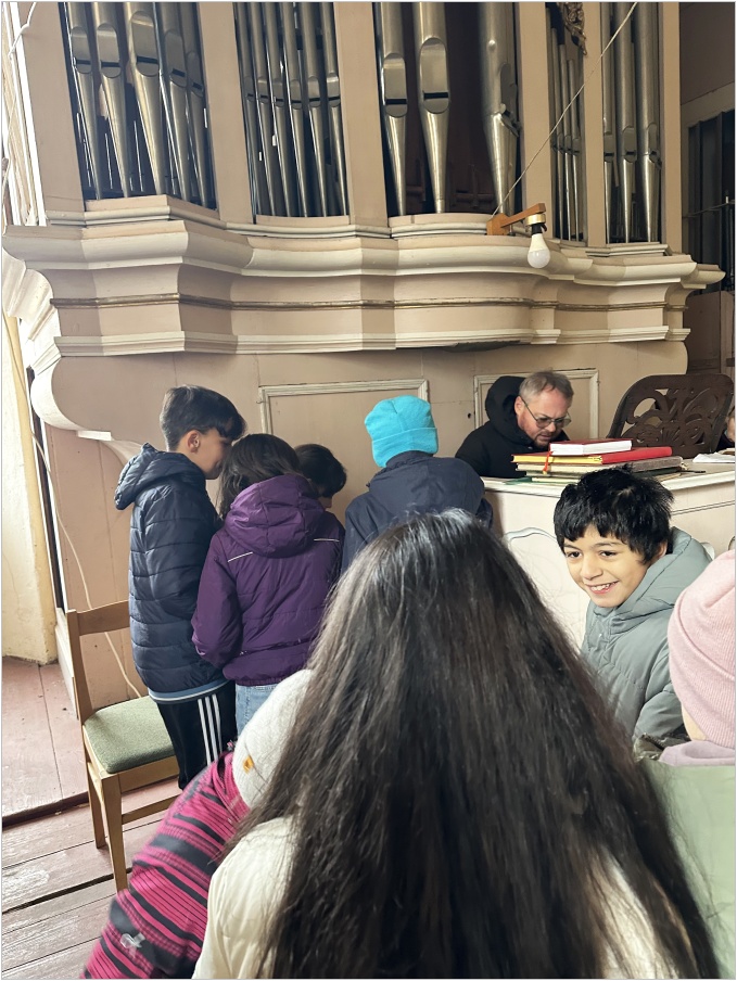 V rámci celoročního projektu s názvem „ Památky a zajímavosti v okolí Bíliny “ jsme se žáky 1. stupně 19.11.2025 navštívili kostel Svatého Petra a Pavla v Bílině. Pan farář M. Saj si pro nás připravil zajímavé povídání. Během vyprávění se zapojovali i někteří žáci zvídavými otázkami na které reagoval jednoduchou odpovědí. Po prohlídce kostela jsme se přesunuli do nejvyššího patra kostela ke kostelním varhanám. Po krátké ukázce hry na varhany jsme návštěvu ukončili. Program se všem žákům líbil.