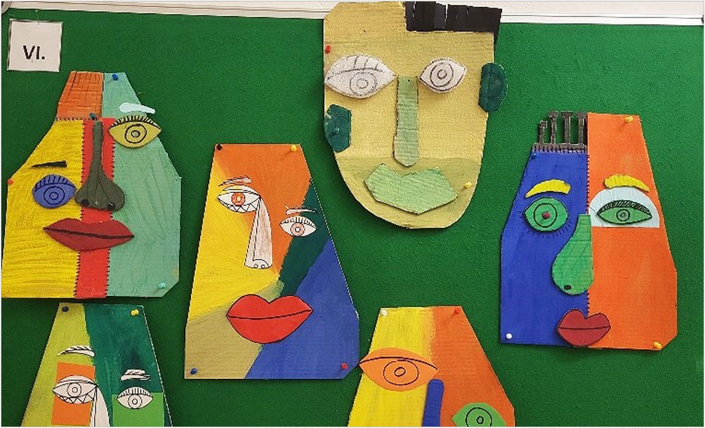V celoročním projektu bylo dalším úkolem žáků II. stupně vytvořit co nejširší barevnou paletu odstínů a vyrobit po vzoru P. Picassa masku inspirovanou africkou kulturou. Jak se žákům práce povedli, můžete posoudit na přiložených fotografiích.