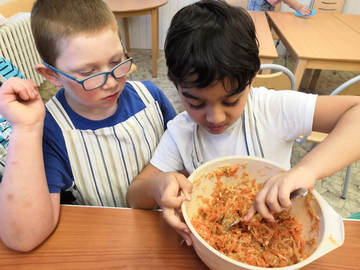 Dne 19.11.2019 se sešli žáci několika tříd na projektové odpoledne nazvané „Saláty plné vitamínů“. Žáci si zopakovali druhy ovoce a zeleniny, seznámili se s pracovním postupem a náčiním, které budou k přípravě potřebovat. Pracovali ve třech skupinách – nejdříve oloupali, nastrouhali jablka a mrkve, poté si salát dochutili a naservírovali do kompotových misek. Salát všem moc chutnal.