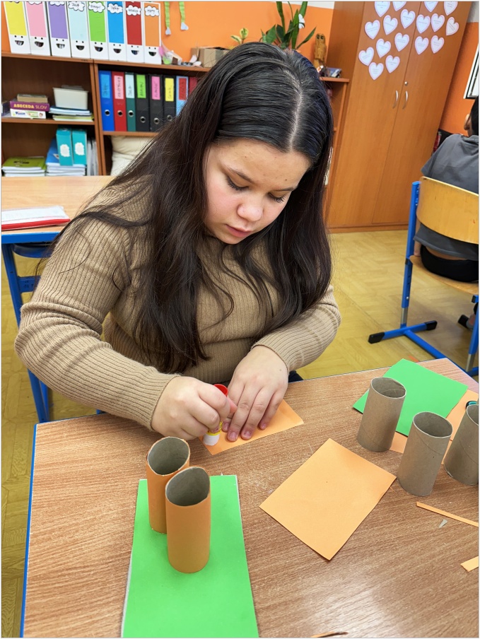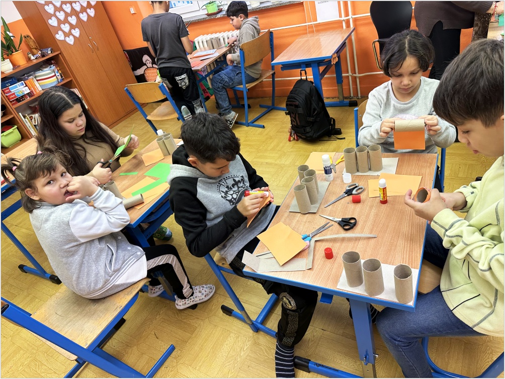 V rámci zájmového odpoledne, které proběhlo 25. 11. pod názvem „Šikovné ruce“, si žáci vyrobili stojánek na pastelky ve tvaru tygra. Nejprve se seznámili s postupem práce a poté se pustili do tvoření. Výrobky se velmi povedly a žáci už se těší, až své nové stojánky naplní pastelkami.