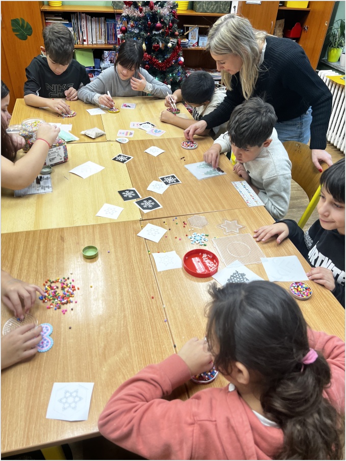 Během zájmového odpoledne, které proběhlo 2.12. si děti vyzkoušely práci se zažehlovacími korálky, ze kterých vytvářely barevné obrázky podle vlastní fantazie i předloh. Skládání korálků rozvíjelo jejich jemnou motoriku, trpělivost a kreativitu.