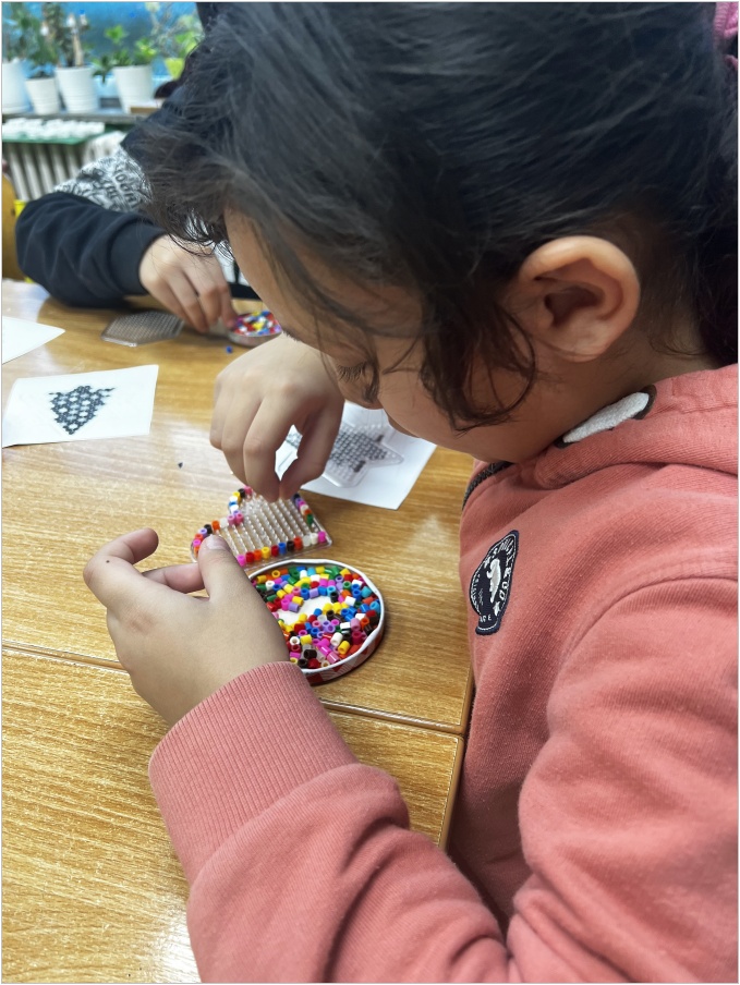 Po dokončení byly obrázky opatrně zažehleny, aby se korálky spojily a vznikl pevný obrázek. Každé dítě si tak odneslo domů svůj hotový výrobek, který mohl sloužit jako hezká dekorace nebo malý dárek pro někoho blízkého.